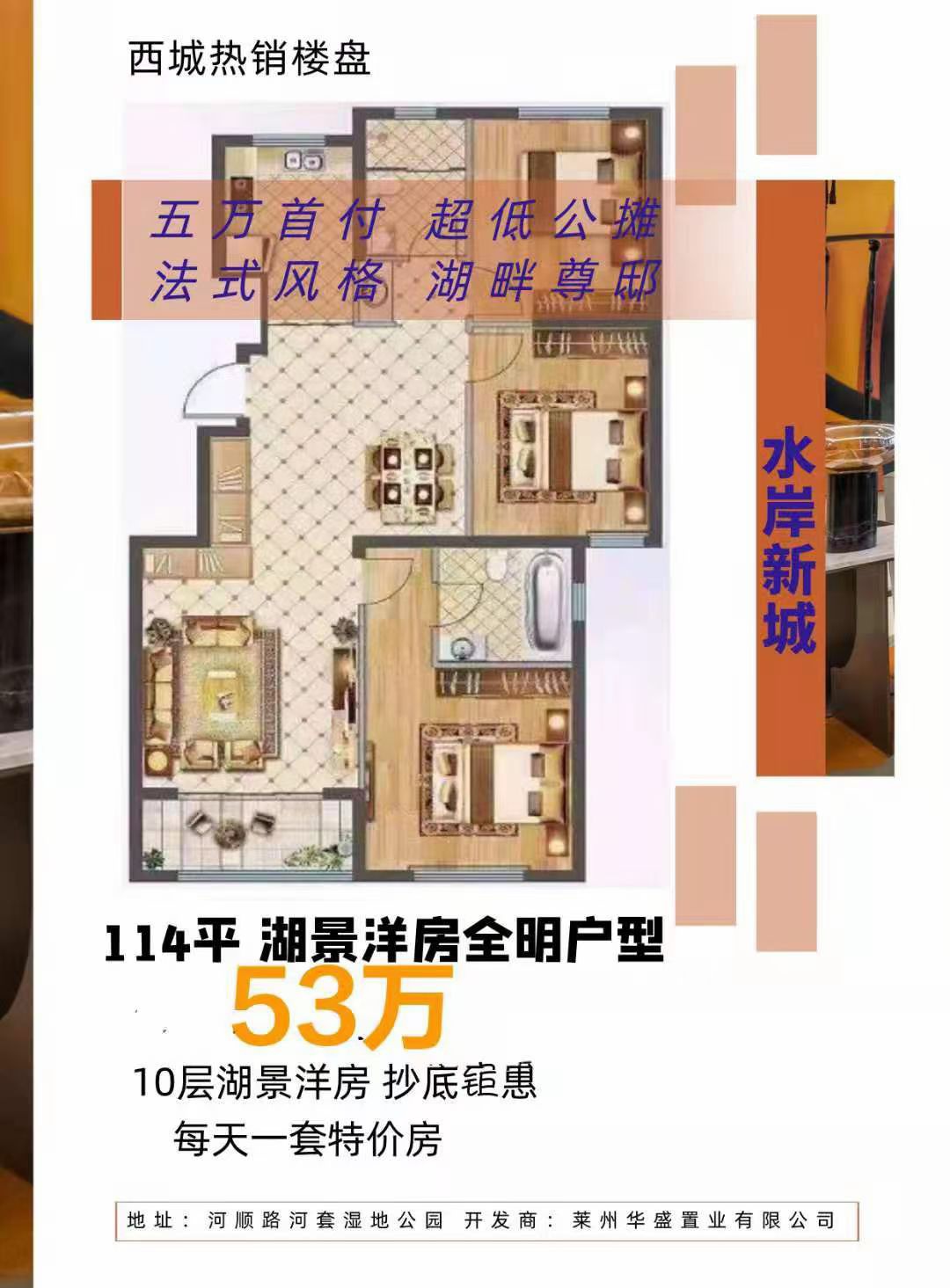 特价好房[色]好楼层 水岸新城湖景洋房 超低公摊 超低首付 53万 三室二厅二卫 仅一套
