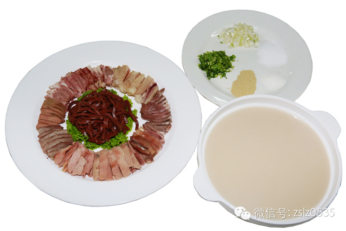熟羊肉600克,心、肝、肺、肚、肠、腰、头、蹄 600克。羊汤1500克。
